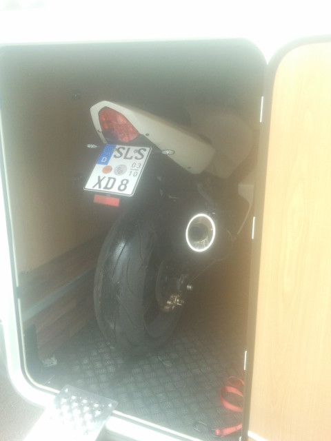 Die Garage ist frei für die Fahrräder. Keine entlastete Vorderachse. Keine Geruchsprobleme. Beliebiges Fahrzeug transportierbar. Gibts auch für die Roller mit 2 Rädern vorn.