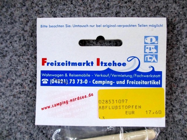 Hallo Tobi02 , ist zwar schon etwas älter, aber ich habe dazu das gefunden. [url --> Link] Für 96 Euronen ist das für mich die Lösung. Vielleicht hat der Stopfen einer Thermoskanne den gleichen Durchmesser... Oder der Händler in Winterswijk könnte evtl. sowas haben: --> Link Hallo Sindbad und Michael, ich habe mir kürzlich im Freizeitmarkt Itzehoe einen solchen Stopfen als Reserve gekauft. Er war nicht gerade billig und kostete 17,60 Euro. Ich füge mal ein paar Fotos bei. Vielleicht könnt ihr euch dort so einen Stopfen bestellen. Die Artikel-Nr. ist 028531097. Helga ![]() ![]() ![]()