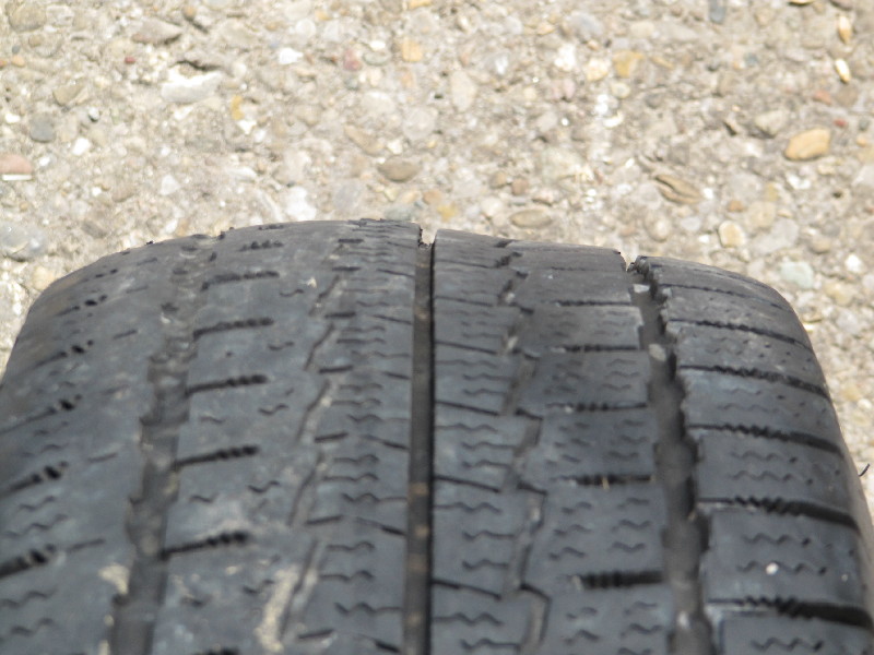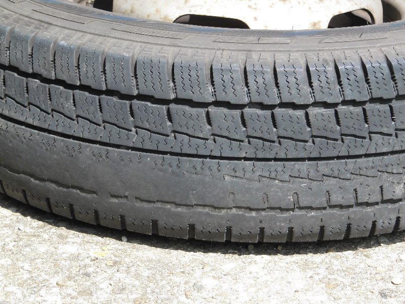 Wenn ich mir den Reifen auf dem Bild anschaue würde ich sagen das ist ein Winterreifen?? Runderneuert?? wo sich die Decke schon Gelöst hat, deshalb Profil auf einer Ecke abgefahren.
