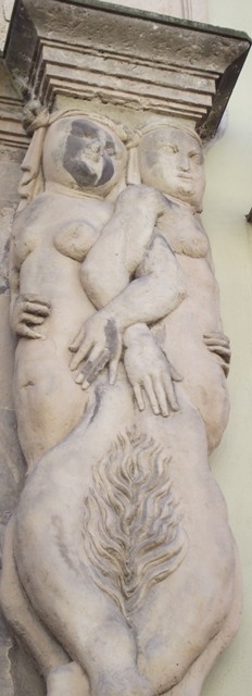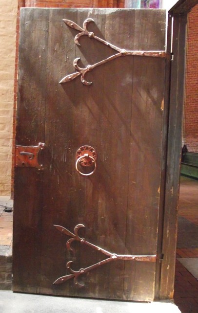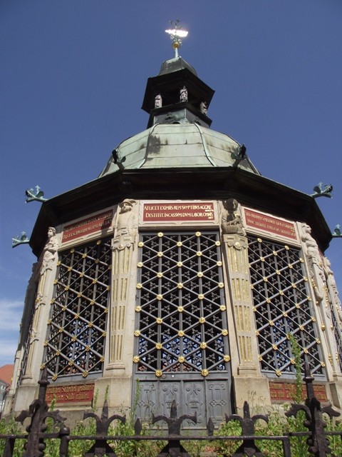 An einer Stelle ist ein viel größeres Loch mit einem Eisenring gesichert und mit einer Glasscheibe versehen, hier wurden früher bei Aufführungen der Auferstehung Christi Schauspieler durch die Decke nach oben gezogen.