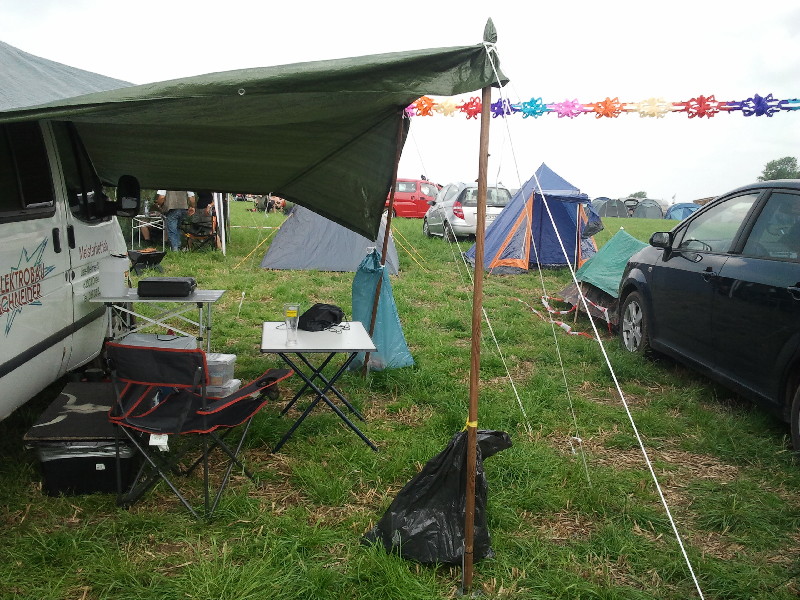 Doch endlich waren wir da. Die Wege zu unserem Campground R waren schon ziemlich schmierig. Hab mir nur gedacht, jetzt nur nicht stehenbleiben oder sonst irgendwelche hektischen Lenkbewegungen machen. Nach der allgemeinen Begrüßung der schon Anwesenden gingen wir erst mal daran unser Auto festivaltauglich herzurichten.