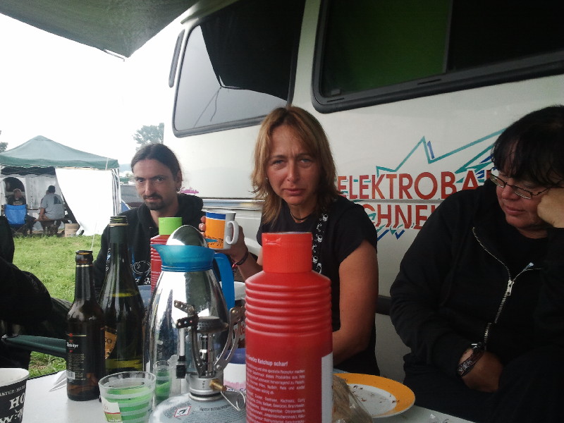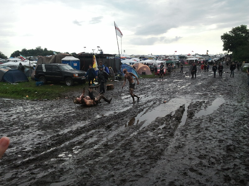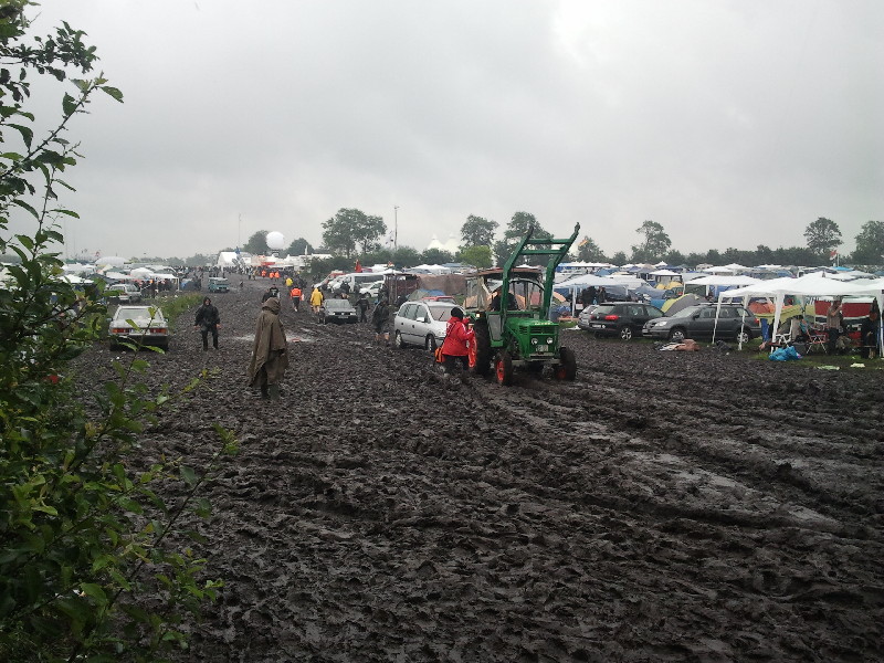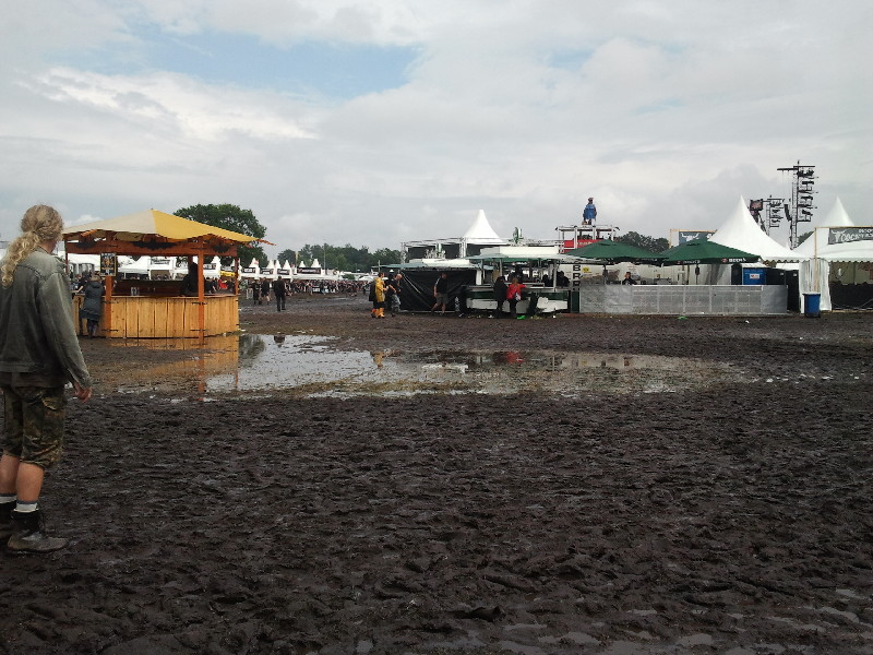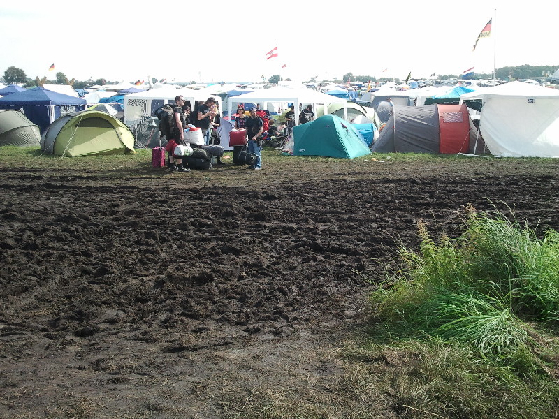 Nach diesem Halli und Hallo und Anstoßen musste ich mich alte ‚Frau erstmal hinlegen und hätte wahrscheinlich den Rest des Tages verpennt, wenn nicht meine Tochter ein paar Bekannte angeschleppt hätte und wir dann endlich Richtung Infield gelaufen wären. Der Matsch hatte zugenommen, doch das macht uns ja nichts aus.