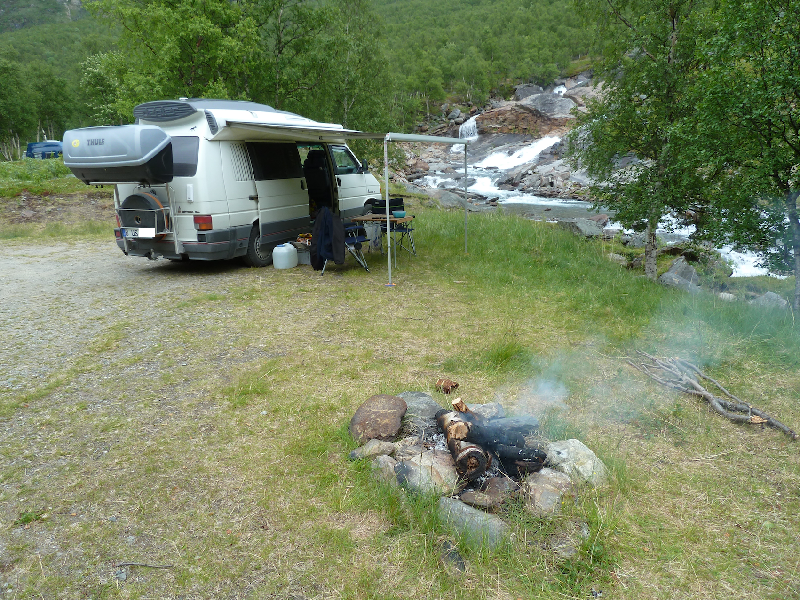 Wir waren auch froh, dass wir - kleidungsmässig - "draußen zu Hause" sein konnten, die Landschaft ist einfach fantastisch! Schön auch, dass der Wagen einfach stehen gelassen und über die Felsen losgewandert werden kann. Das freie Stehen ist einfach toll; nachdem wir uns daran gewöhnt hatten und dass die Siedlungen keine Kernbebauung haben sondern aus verstreut in den Wäldern liegenden Häusern bestehen, war auch eine neue Erfahrung. Anders als an der Küste und im südlichen Bereich fällt im Norden (auch in SE und Finnland) auf, dass an den verstreut liegenden einsamen Häusern oft 5- 6 alte Schrottautos stehen und eines oder mehrere, mit denen gefahren wird. Bei der Vorbereitung haben wir im ADAC-Tourset gelesen: Alles ist sehr teuer: Die Abrechnung der Ausgaben führt jetzt zu Tage: rund 440€ für Einkäufe von Esswaren (ohne Alkohol! - aber leckeren Lachs! -1 L Milch: 1,73€!!). Mit den knapp 1400€ für Tanken hingegen haben wir bereits gerechnet. Bei den Preisen der CP hingegen (insges. über 700€) freuen wir uns auch auf Italien. Bei dem Preisniveau Norwegens findet man hier bestens erhaltene, gepflegte Anlagen z.B. in Lana (Meran). die Preise fürs Campen mit ca 35€ (meist 250NKr manchmal Dusche extra 10NKr) )haben sich in den letzten Jahren eher an die italienischen Preise um Gardasee/Adria angepasst wie mir scheint.