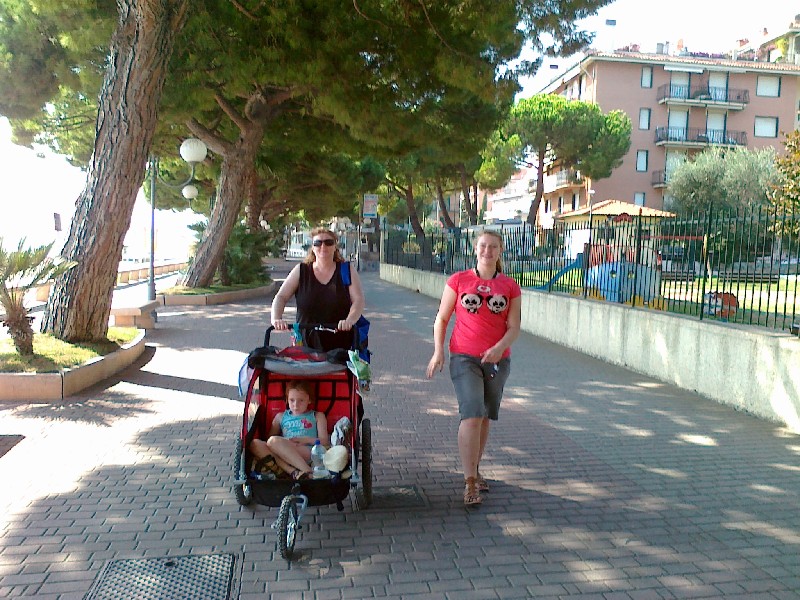 hatten wir auch und September ist als Reisezeit super ...... Die Italiener werden Euch etwaS "beäugen " diese Art des Kindertransportes kennen die dort unten nicht --->>