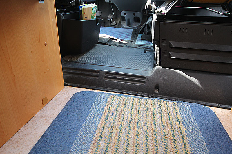 Dank Doppelboden ist der Übergang in die Fahrerkabine eben. Seit der Umrüstung von 215er auf 225r Reifen sind die Fahreigenschaften für WoMo Verhältnisse wirklich gut. Selbst bei 130kmh fühle ich mich noch sehr sicher, wobei ich dies aber fast nutze da ich gerne gemütlich fahre. Mit den 215ern fand ich sie etwas zu schwammig und zu Seitenwind-empfindlich. Warum die paar mm so viel ausmachen kann ich euch nicht erklären. :? Einzig Spurrillen mag er durch die unterschiedlich breiten Achsen nicht wirklich. Kurzum ist mein Urteil: X250 Tiefrahmen und 225er ergibt eine gute Straßenlage für WoMo-Verhältnisse, die keiner Verbesserung mehr bedarf.