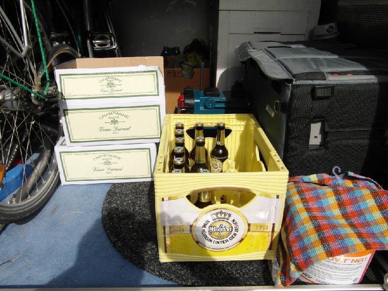 es wird Zeit für ein Kleberle! :D Aber nur, wenn auch genug Bier im WOMO-Keller vorhanden ist. Nach einer ausgiebigen Tour durch das Schlaf- und Wohnzimmer wollen die Gäste auch was trinken. :D