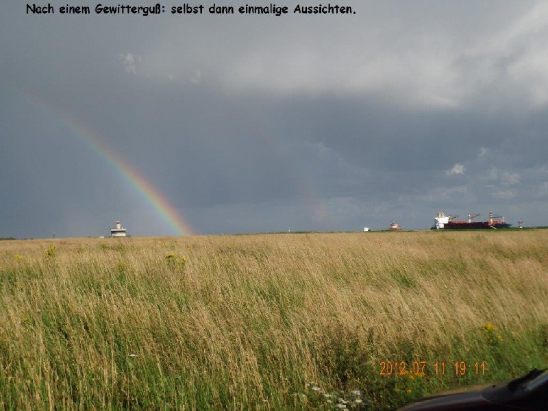 Asphaltiert, leicht abschüssig aber gut auszugleichen und Platz für 5-6 Wohnmobile bietet dieser Platz nur 2 Gehminuten bis zum Ortszentrum mit Supermarkt. Er liegt quasi vor dem Deich, weshalb es dort SEHR stürmisch ist - die restliche feuchte Wäsche war in null komma nix trocken, aber wir wurden nachts doch öfters mal wach. Ansonsten war alles ringsherum leise, die Umgebung lädt zu schönen Spaziergängen ein. Für die Fernsehleute unter den WoMo-Fahrern, die Nachbarn links und rechts neben uns haben ihre Schüsseln hochgefahren und hatten wohl keine Probleme mit dem Empfang. Ein Stellplatz der besonderen Art. Leider keine VE und kein Stom. Sehr ruhig und dennoch abwechslungsreich. ![]() ![]() ![]() |