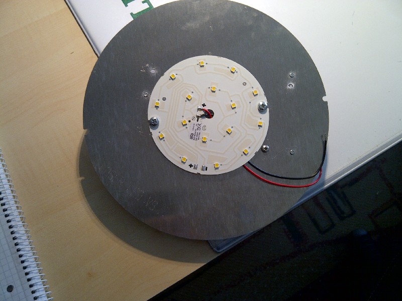 ich habe mir aus dem techn. Ersatzbedarf unseres Unternehmens einen Umrüstsatz von Kompakt-LL auf LED besorgt. Normalerweise besteht der Umrüstsatz aus einer Metallplatte, darauf befindet sich auf der einen Seitedie Platine mit den LED und auf der anderen Seite der Treiber, da es ja eigentlich für 230V gedacht ist. Die Platte hat einen Durchmnesser von 20,5cm, die Platine darauf von 10cm. Meine Grundidee ist nun (hat hier auch schonmal jemand so in etwa umgebaut), eine Deckenleuchte mit opaler Abdeckung (möglichst klein) zu suchen, in der ich dann das LED-Modul einbauen kann. Allerdings hat das Ding einen Lichtstrom von 900lm, was schon extrem hoch ist, wohl zu hoch als Beleuchtung im WoMo, aber möchte das mal ausprobieren. Also: mal in den örtlichen Baumarkt und nach ner kleinen Anbauleuchte Ausschau gehalten und dann die Mimik da eingebracht........ Wenn zu hell, bau ich die einfach in die Heckgarage ein....... :D Werde berichten.