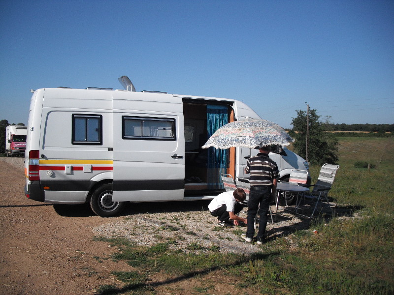 das war unser 2. Stellplatz, bei einem Enten und hühnerbauern, absolut ruhig, bis auf den Esel, der hatte Blähungen, und das lies er hören.
