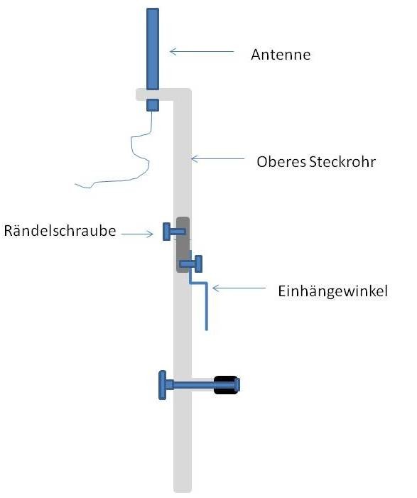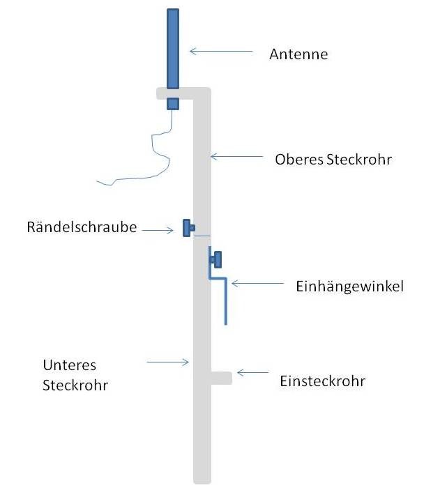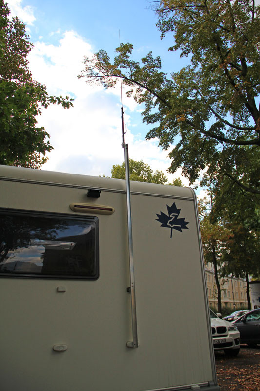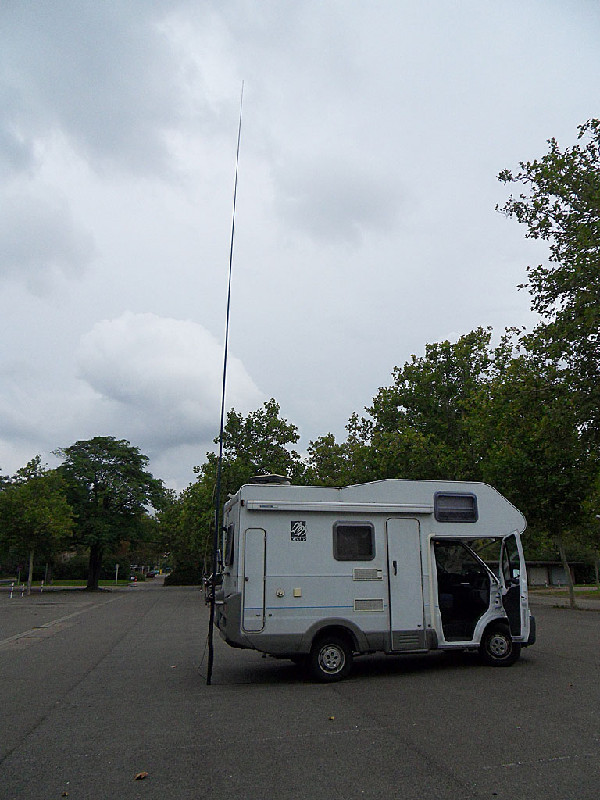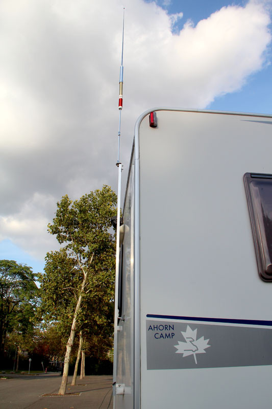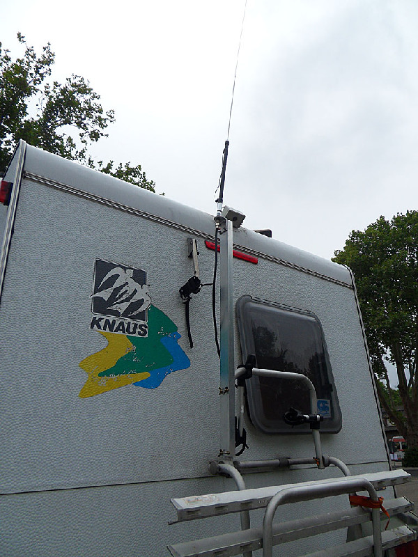 Am letzten Wohnmobil habe ich an den Fahrradträger eine Profilschiene geschraubt, die am oberen Ende auf Dachhöhe den Antennenfuß hatte.