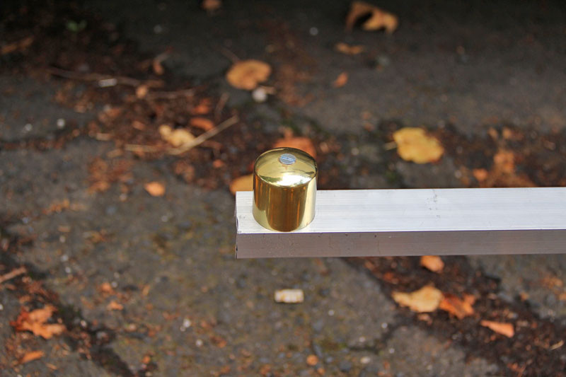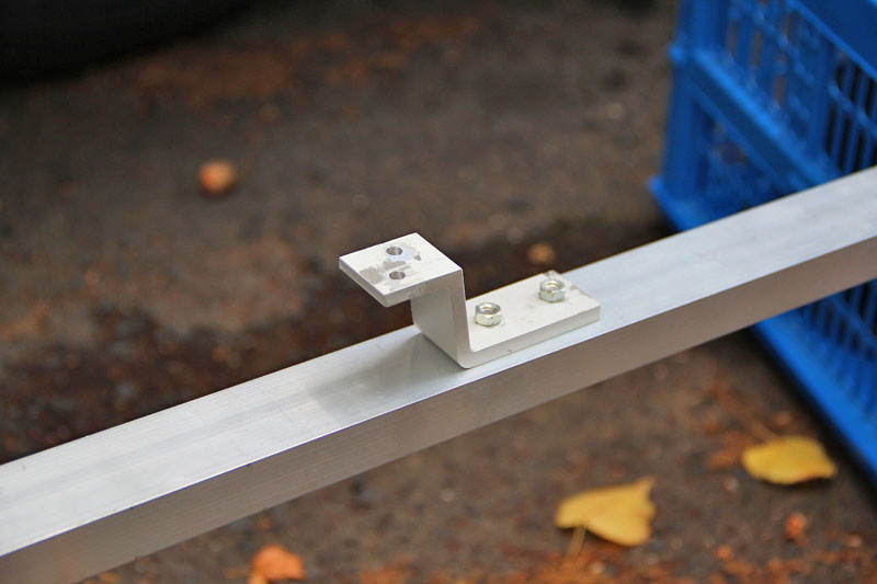 Am oberen Halter (nach 7 Jahren schon deutlich korrodiert) kann man was einhängen, an den unteren ein rundes Rohr einstecken