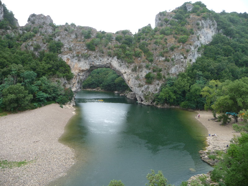 Heute morgen hat es ein Gewitter. Wir brechen auf und fahren weiter in Richtung St. Martin de Ardeche auf der D290. Wir kommen am Pont d'Arc vorbei und machen es wie andere auch: Wir halten am Straßenrand um wenigstens ein Foto davon zu ergattern.