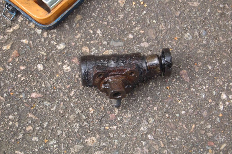 Oh je. Wir bocken den Wagen auf, entfernen Rad und Bremstrommel und sehen die Bescherung. Der Bremszylinder ist völlig zerstört, ebenso die Bremsbacken verbogen, auf einer Seite ist der Belag abgesprungen, auf der anderen Seite völlig herunter geschliffen. Bremsflüssigkeit läuft aus. Heike ruft Klaus an, damit er zu uns kommt, wir haben ja Lars an Bord und an eine Weiterfahrt ist nicht zu denken.