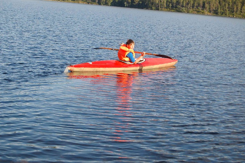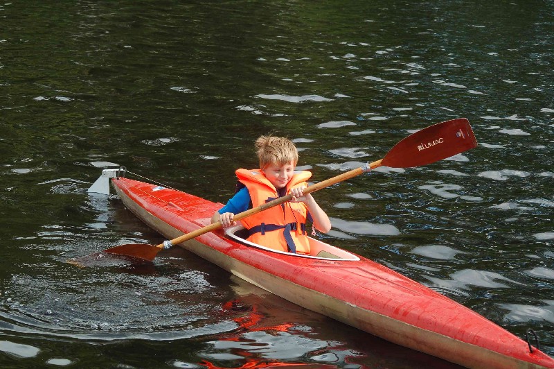 Das Wetter ist durchwachsen, wir nutzen Regenpausen um zu baden und mit dem Paddelboot zu fahren. Die Jungs versuchen zu angeln, leider haken sich die Blinker auf dem Boden fest und 2 mal reißt die Schnur ab. Plötzlich ist an der älteren Angel die Öse für die Schnurführung ab, die andere Angel hat einen Schnurhudel. So bin ich ununterbrochen damit beschäftigt diese Probleme zu lösen.