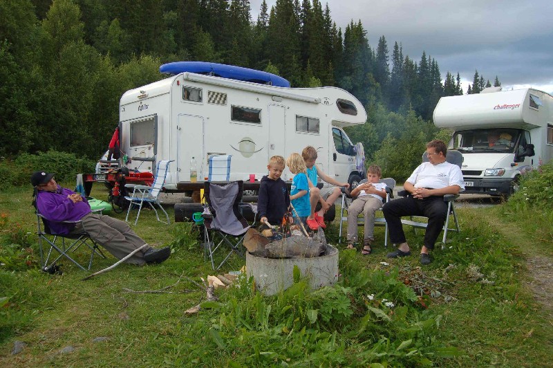 Um 6.50 Uhr, noch vor dem Wecker werden wir wach, frühstücken und rufen um 7.30 Uhr bei Ford an, ob die Ersatzteile da sind. Es wird spannend..."Moment, ich frage mal nach.. ja, sie sind mitgekommen". Gott sei Dank, wir starten um 8.00 Uhr mit Christians Wohnmobil nach Sunne, nach ca. 70 Minuten kommen wir an und tatsächlich, der Vergleich der alten Teile mit den neuen ergibt, dass die Teile passen. Wir bezahlen über 5.600 Kronen ca. 700 Euro, fast der doppelte Preis der Teile in Deutschland, aber was sollen wir machen? Wir sind froh, dass wir die Teile haben und unser Womo wieder flott bekommen. Wir erkundigen uns noch wo der nächste Baumarkt ist, da wir eigentlich einen stark gekröpften 8er Ringschlüssel für die Entlüftungsschrauben der hinteren Radbremszylinder benötigen und einen durchsichtigen Plastikschlauch zum Entlüften der Bremse. Einen stark gekröpften 8er bekommen wir nicht, aber wenigstens einen normal gekröpften und Plastikschlauch. Um 11.00 Uhr sind wir zurück am Womo und sofort beginnt die Reparatur. Christian holt aus dem Altpapiercontainer eine große Pappe auf der wir uns unter das Auto legen können, ich aus dem Sammelcontainer für Blechdosen eine leere Blechdose zum Entlüften der Bremse. Dann geht's los. Gemeinsam mit Christian montieren wir die neuen Bremsbacken, wir bauen nicht die Hinterachse auseinander, wie Ford dies vorgibt, sondern manövrieren die Bremsbacken an der Radnabe vorbei. Dazu müssen wir die Federn aushängen, das Einhängen der Federn wird schwierig, aber gemeinsam schaffen wir es, auch die Haltefedern der Bremsschuhe einzuhängen. Probleme bereitet das Handbremsseil, ich krieche unter den Wagen und löse die Handbremsseile an der Handbremswippe, dann geht es. So, die Bremsanlage ist zusammen, nun muss noch die Trommel drüber, aber die passt nicht drauf!! Wir kämpfen wie die Weltmeister, aber es klappt nicht, der Grund ist unklar. Also beschließen wir die Rückstellung ganz zusammen zu drehen, dann bekommen wir die Trommel drauf. Anschließend entlüften wir gemeinsam alle 4 Bremsen. Dann folgt eine Probefahrt, aber oh weh! Die Bremse ist "weich" und Bremsleistung liegt bei geschätzt 20% des normalen. Da ist guter Rat teuer, wo liegt der Fehler? Ein Test der Bremstrommeln ergibt, dass die Fahrerseite kalt, die Beifahrerseite warm ist. Also liegt der Fehler wohl dort. Wir bauen die Räder und die Bremstrommel wieder ab, dann stellen wir den Nachsteller wieder auf "weit" Schrittweise näheren wir uns der maximalen Einstellung, bei der die Trommel gerade noch drauf geht, Nun geht es seltsamerweise auch mit aufgedrehter Nachstellung. (Grund ist offenbar der Bremszylinder, der nun "eingearbeitet" ist. Danach entlüften wir die Bremse noch einmal rundum, am hinteren, neuen Bremszylinder kommt zunächst nur wieder Luft. Dann folgt Probefahrt Nummer 2. Ok, nun scheint alles in Ordnung. Wir räumen alles auf und ein, die gebrauchte Bremsflüssigkeit vom Entlüften füllen wir in eine alte Milchtüte. Inzwischen ist es 16.00 Uhr. Notdürftig wasche ich mich, dann starten wir mit den 3 Wohnmobilen und fahren wir in Richtung Orsa, tanken und ver- und entsorgen alle 3 Wohnmobile, dann übernachten wir am Helvetsfallet.