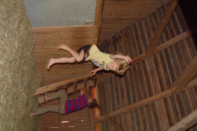 Nach der Besichtigung fahren wir weiter nach "Bullerbü", die Kinder klettern in den hohlen Baum und springen im Schuppen ins Heu.