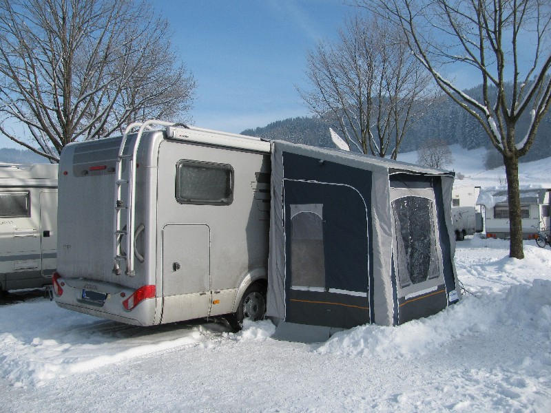 Hallo, wir haben ein reines Wintervorzelt. Dazu haben wir an der Markise eine Kederleiste angeschraubt in der das Vorzelt eingezogen wird. So verbringen wir seit Jahren unseren Winterurlaub in Hopfen am See Camping Hopfensee. Bernd