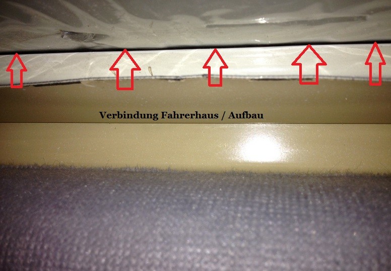 bei unserer Wochenendausfahrt hat sich ein Problem aufgetan. Während der Fahrt machte sich ein lautes Knacken so aus der Richtung über dem Beifahrersitz bemerkbar. Zu Hause angekommen habe ich gleich die Alkhovenverkleidung und die Trennwand abgebaut um die Ecke freizulegen.