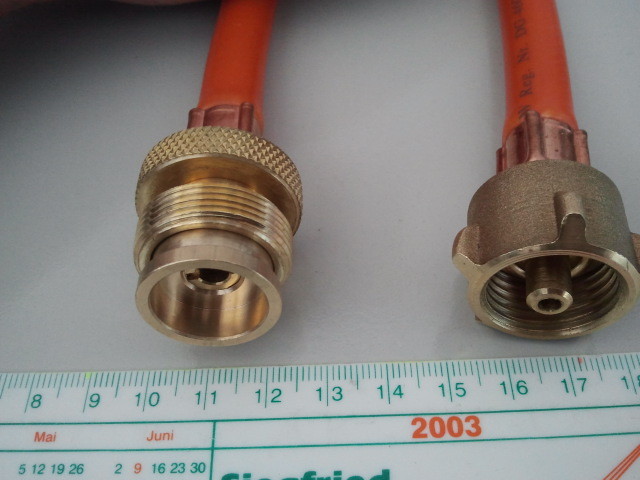 Problem: Es gibt scheinbar kein Kupplungsstück um den mitgelieferten Hochdruckschlauch über ein Verlängerungsschlauch an meine 11kg Flasche bzw. an einen Niederdruckschlauch zu verbinden.
