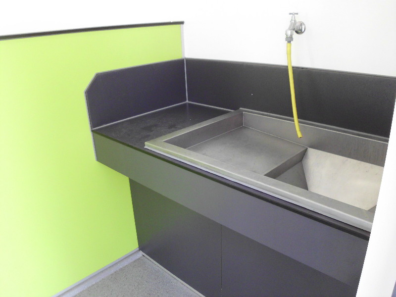 Schon der Raum ist separiert. Und die Handhygiene danach ist sichergestellt.