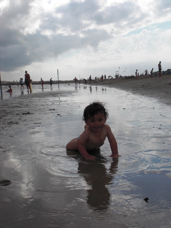 Wir statten unser Kind erstmal mit Regensachen aus und machen das Beste aus der Situation. Am Nachmittag regnet es nicht mehr durchgehend, sondern in Schauern und wir wagen uns an den Strand. Warm genug ist es zum Glück und Kind darf mit den Beinen ins Wasser. Wir verbummeln den Tag mit Eis und gehen abends in einer der vielen Pizzerien essen.