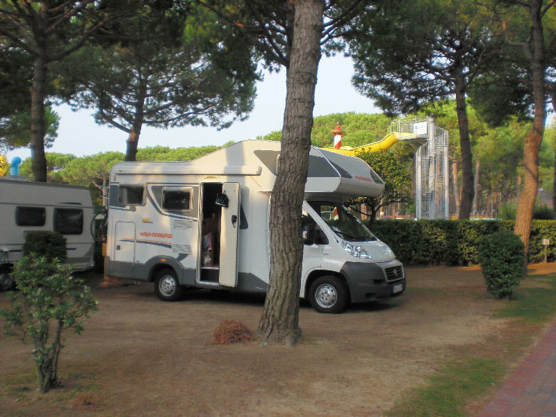 Donnerstag: 7h, wir fahren weiter. Der Plan ist, trotz der Aussage von gestern das Stella Maris anzufahren, sollte dort wirklich alles belegt sein, gab es da nicht noch andere unzählige CPs nebenan? Vielleicht sollte es ja alles so kommen, wir haben auf jeden Fall glück. In Jesolo gibt es einen Lidl, die Sonne scheint, es ist heiß und um 10h bekommen wir einen Super Platz auf dem Stella Maris. Direkt beim Pool und dem Waschhaus. Hmmmmm, der entspannte Teil des Urlaubs fängt an.