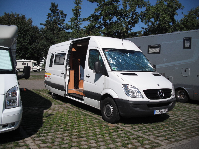 Engelchen neben einem Dickschiff auf dem Stellplatz an der Blauwiese/P1: