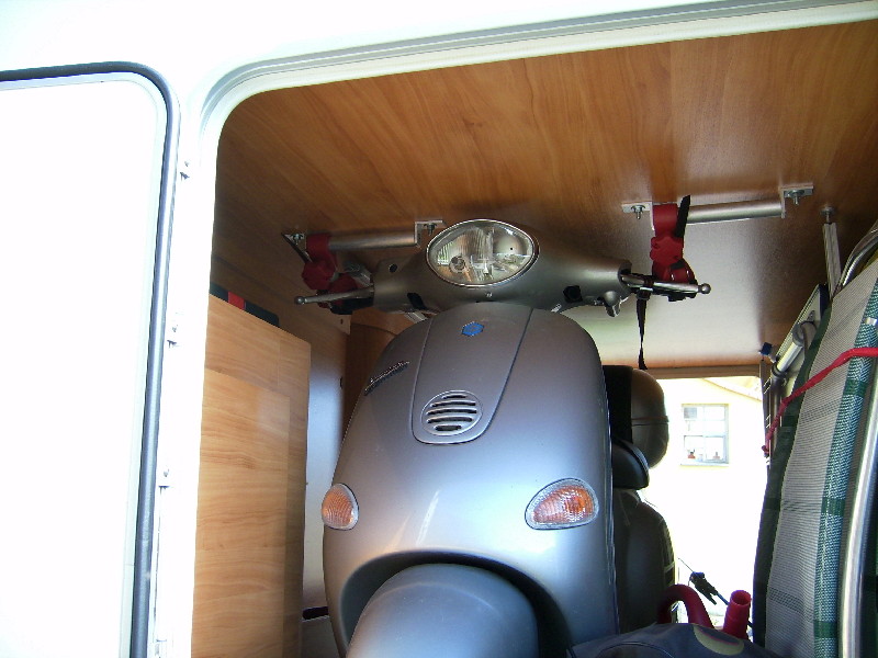 Hallo smeagol, ich finde nirgens die Maße der Vespa Et4 125 ccm. Kannst Du mir die nennen? Obwohl ich eine Adria wie Du hast, habe ich nur eine große Garagenklappe und eine kleine. Wie groß ist die Öffnung Deiner Garagenklappe genau. Bitte mal messen. Die kleine Klappe zum Innenraum habe ich mit Dichtungen abgedichtet. Beim alten WoMo hatten wir den jetzigen Roller auf einer Rollerbühne (IVECO Heckantrieb). Trotz Abdeckung verdreckte das Ding total. Das größere Problem das ich sehe ist die Verlängerung des Hecküberstandes und der damit verbundene Verlust an Tracktion. Also ich will das Ding in den Stauraum stellen. globetruck