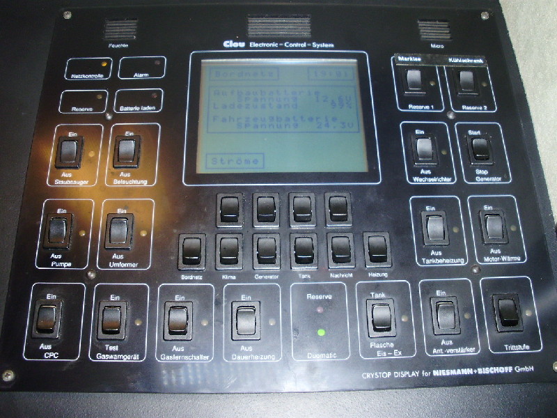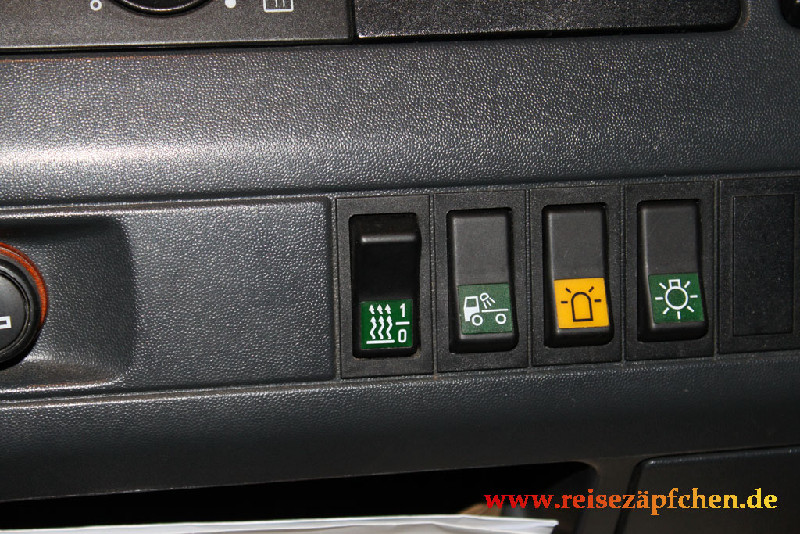 wir haben das gleiche Bedienfeld wie ihr, bei uns ist der ganz linke Schalter mit dem Wassertankfühler für 80 % Füllung belegt. Wenn beim Wassertanken ca. 80 % drin sind fängt der an zu piepen damit man weiß das man bald ausstellen muß.