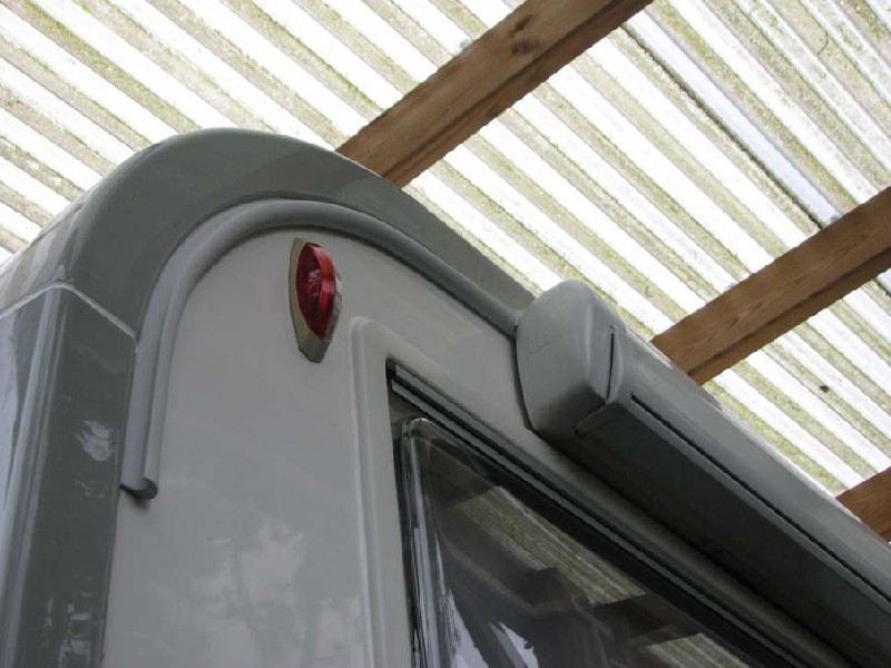 --> Wer den Aufbau vom Elnagh Marlin 65G mit dem blöden Knick (Übergang Alkoven zum hinteren Aufbau) im Dach entworfen hat, gehört sowieso gesteinigt! Dort bleibt immer das Wasser stehen und läuft dann direkt an der Seitenwand über die Kühlschrank-Lüftungen ab.