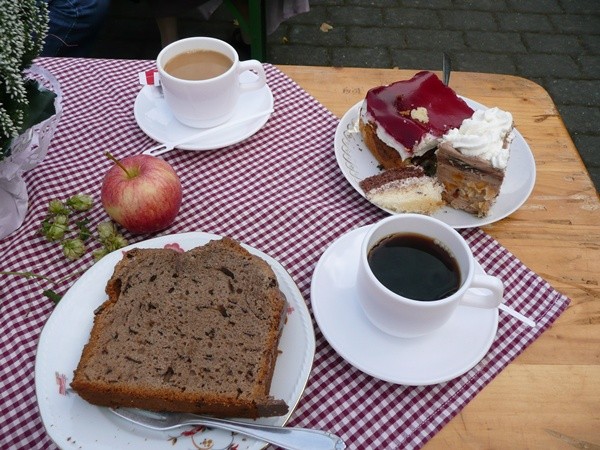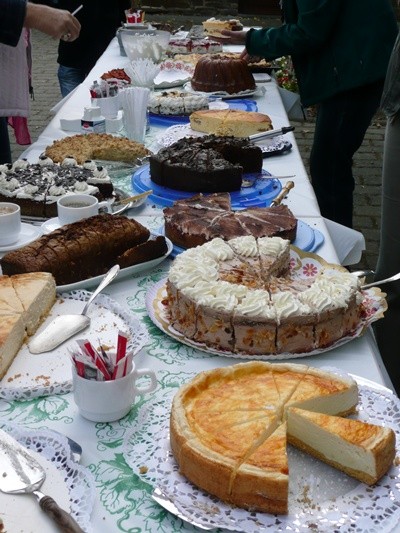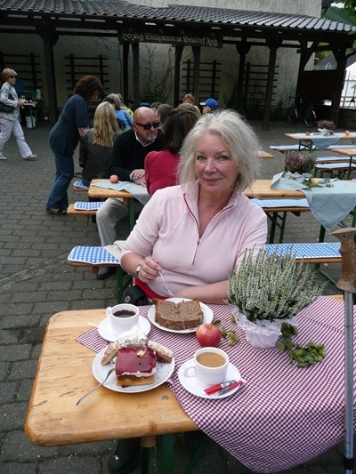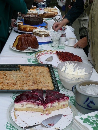 Das Wetter hält, also auf zur Wanderung. Zuerst geht es nach Rech, wo wir das Kuchenbüffet der „Damenriege“ in Augenschein nehmen und uns für den Nachmittag schon mal das eine oder andere Stück Kuchen aussuchen.