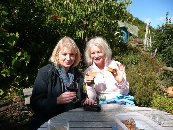 Beim Zwischenstopp in der Eremitage lassen wir es uns gut gehen. Yvonne hat Kuchen gebacken und der schmeckt mit Federweißer direkt in den Weinbergen besonders gut.