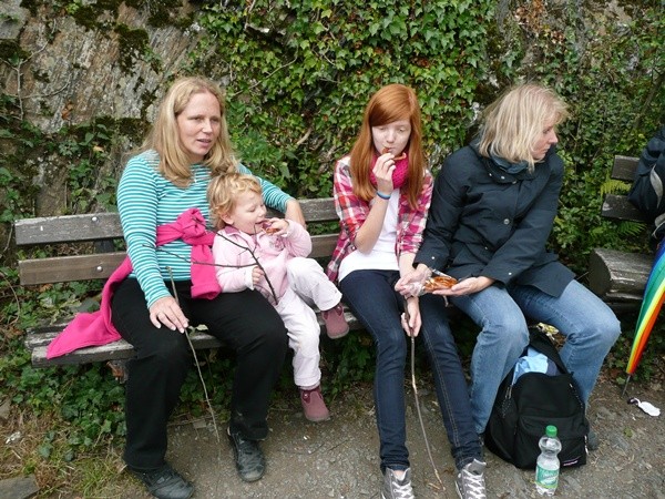 Weiter geht es, wieder an der Saffenburg vorbei, Richtung Mayschoß, wo plötzlich ein Ruf erschallt: Hallo Uschi-s. Wir treffen auf Sonja (womo63) mit ihrer Freundin, die auf dem Weg von Mayschoß nach Recht sind (natürlich zum Kuchenbüffet). Sonja hatte gelesen, dass wir an die Ahr wollten und hatte gedacht, wir stehen in Mayschoß. Schade, es wäre bestimmt ein schöner Abend geworden.