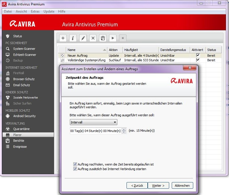 gibt es Virenscanner bei denen ich den Dwonload von Virensignaturen abstellen kann? Wir kommen gerade aus Frankreich zurück, und ich hatte dort das EU 50MB Paket (pro Woche) gebucht. Normalerweise reicht das, aber diesmal..... Ich habe Mircosoft Essentials installiert, und der hat mir innerhalb von einer Woche (mindestens) 2 Mal neue Virensignaturdateien runter geladen, und hat mir so von den 50MB um die 20MB geklaut! Und abstellen kann man das nicht. Kann man das bei Anderen? Ich habe hier noch Avira laufen (sogar die Bezahlversion), habe aber noch nicht gecheckt ob man den Download von neuen Signaturen unterbinden kann. hier kannst du bei Avira den Updateintervall selbst einstellen