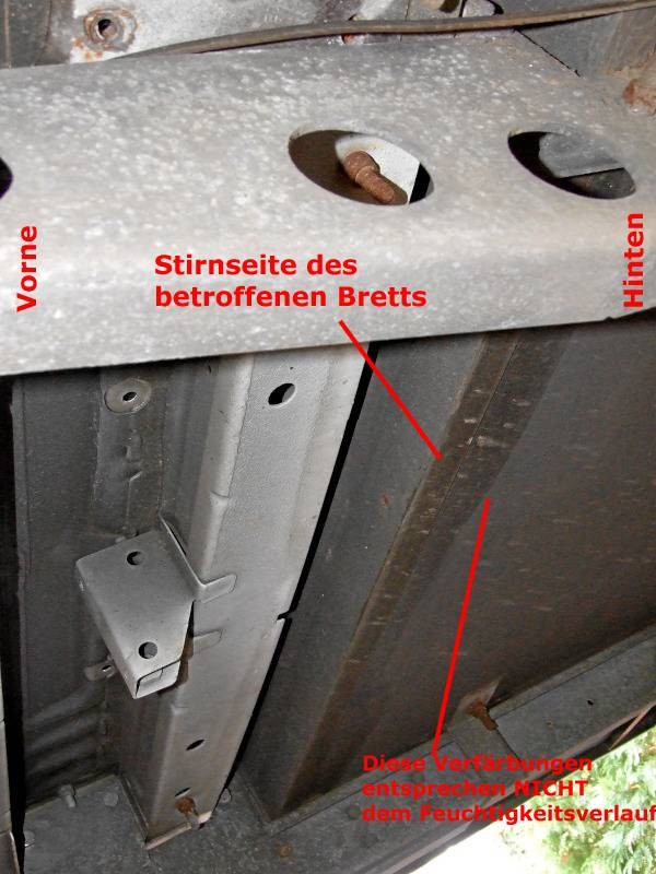 Sowohl Garagenwand als auch Unterboden sind hart, es blättert nichts ob oder so. Allerdings ist bei der Garagenwand die Stirnseite des Holzes dem Spritzwasser ausgesetzt, die ja bekanntermaßen empfindlicher ist. Daher mache ich mir auch keine Sorgen - na ja, fast keine Sorgen...