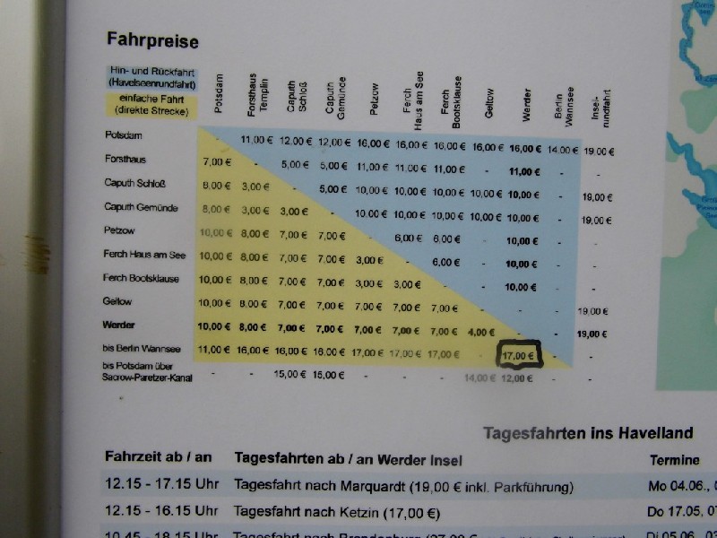 Ich habe jetzt versucht, im Inet nach einer Verbindung von Werder nach Potsdam zu suchen, da wir beabsichtigen, Sanssouci zu besuchen.
