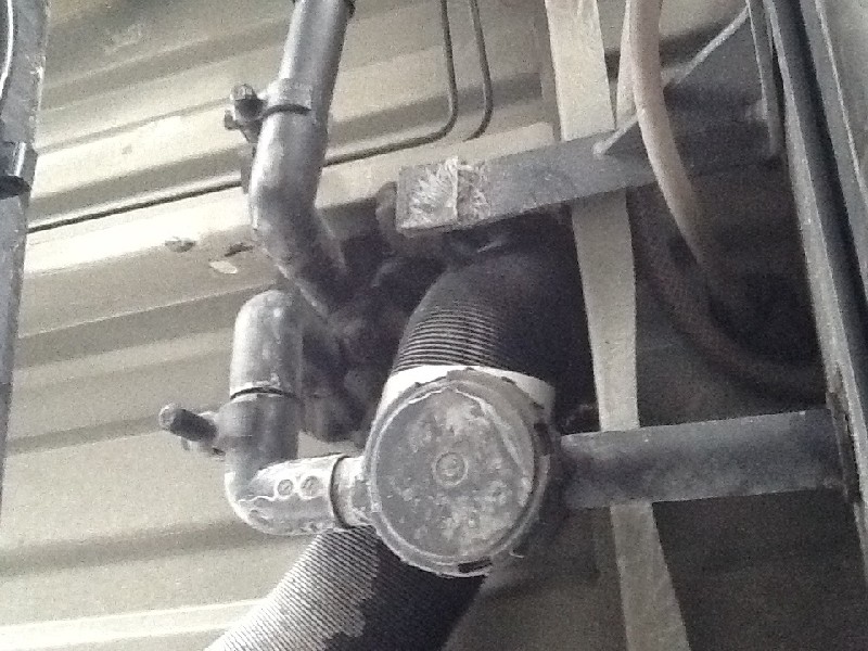 Ach ja, die beiden Rohre sind vor dem Tank. Also immer im Wind. Ebenso merkwürdig ist das Abwasserrohr installiert. Geht erst aus dem Tank nach vorne, dann nach rechts, um dann nach hinten hinter die Achse zu laufen. ( Kopfkratz)