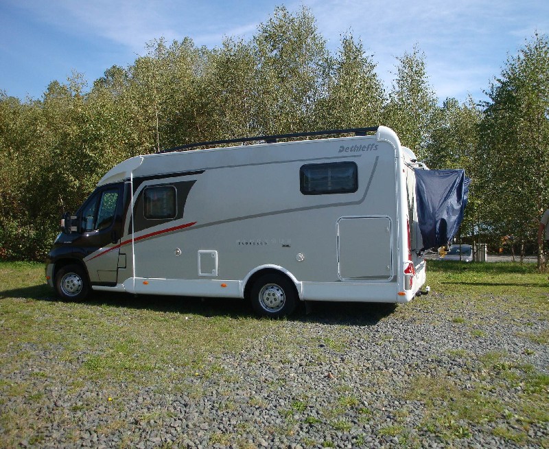 Wenn man hinter Brücke nach links abbiegt, kann man vor dem CP ebenfalls für 7€ stehen, dort ebenfalls Toiletten, die wohl schon zum Campingplatz gehören (brrrr). Auch eine Möglichkeit die WC-Kassette zu leeren war da. Angelscheine gibts vor Ort (wenn geöffnet). Was eventuell die Nacht stören könnte ist die nahe Autobahn. ![]() |