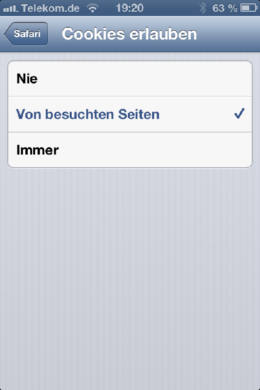 ich benutze safari auf ipad3, den haken bei der loginfrage habe ich gesetzt und in den einstellungen sind die cookies von besuchten seiten so wie pipo es gezeigt hat. generell alzheimer hat er nicht. nach schließen des browsers und wiederöffnen sind alle tabs wieder da und auch die lesezeichen. mit dem Mercury-browser gibt es keine probleme beim besuchen von webseiten mit login. Man sollte den Mund nicht zu voll nehmen. Nachdem Peter nachgelegt hat, fällt mir momentan nichts mehr Geistvolles ein.