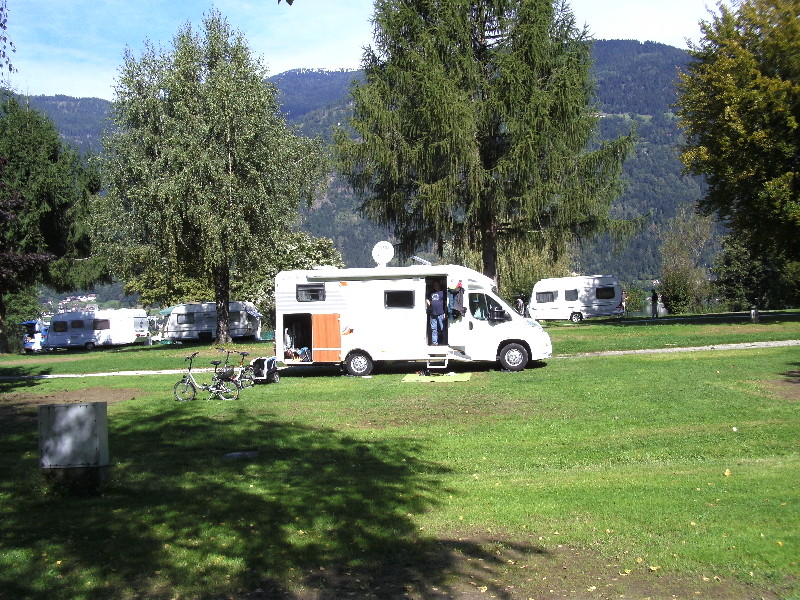 Bisher haben wir dieses Land immer nur recht schnell durchquert oder während der Winterzeit in einer Berghütte mit reichlich geistigen Getränken bewohnt, wo wenig in der Erinnerung von blieb. So bot sich das Warten auf die Gültigkeit unserer 7 Tagesvignette für Slowenien förmlich an, mal während einer mir angenehmen Jahreszeit ein Stück Kärnten kennenzulernen. Noch im Hellen kamen wir am Ossiacher See auf dem CP an.