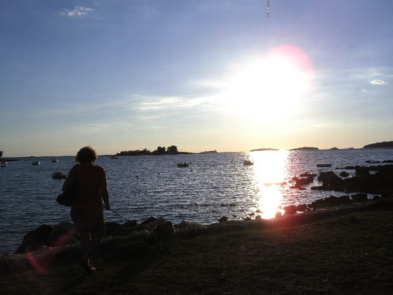 Wir haben einen Spaziergang nun nötig und schauen uns nach besseren Plätzen um. Und siehe da, der Sonntag war für viele Abreisetag, wir finden einen noch näheren Komfortplatz am Wasser, gar mit einem Baum für Muffin. Dazu wirklich sehr ruhig, was dann auch für die Woche so bleiben sollte. Wir holen das Wohnmobil, bauen alles wieder auf, da kommt auch schon unser Freund der Bootstourenverkäufer wieder, sieht mich, ich seh ihn, ich grüß ihn und wir lachen beide. Geht doch. Also jeden Morgen Bootstourenverkäufer, Backwarenfachverkäufer und Altglasverwerter und dann ist Urlaub.