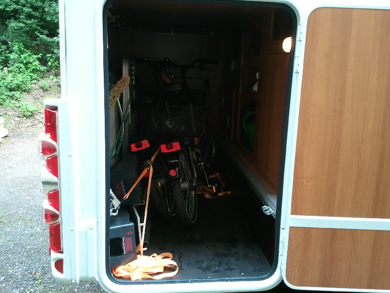 Am Nachmittag zurück, der Mops jammerte schon gemäßigt und wir kommen gerade rechtzeitig auf dem CP an, daß wir noch beide die hervorragenden Duschräume ausprobieren können. Dann eine Generalprobe, unser Hund war noch nie einen Abend allein im Wohnmobil, da wir uns aber dachten, das ein Wohnmobil auf Transitbasis bestimmt mit recht einfachen, leichten Hölzern und Polstern zusammengehalten ist, wollten wir nichts riskieren.