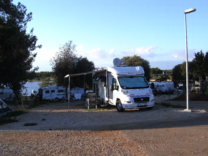 Ist uns aber egal, wir steuern Rovinj an, ausgesucht haben wir den CP Polari, der recht groß und komfortabel sein soll. Der erste Eindruck ist gut. Ein großer Parkplatz zum Einchecken, moderne Rezeption und wir sollen über den Platz gehen, uns eine Parzelle aussuchen.