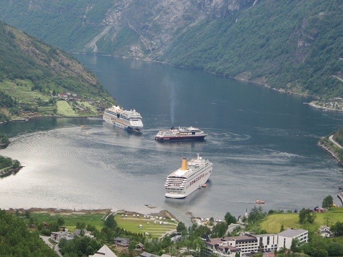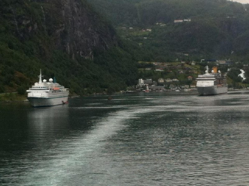 ... liegt am Eingang des Fjordes - alle Schiffe fuhren auf uns zu und drehten dann rechts ab zum Ort. Es war der beste Platz !!