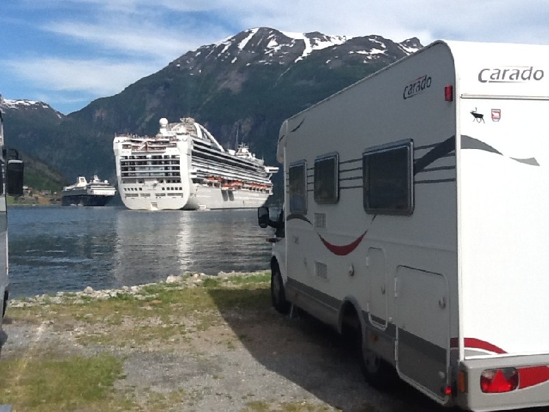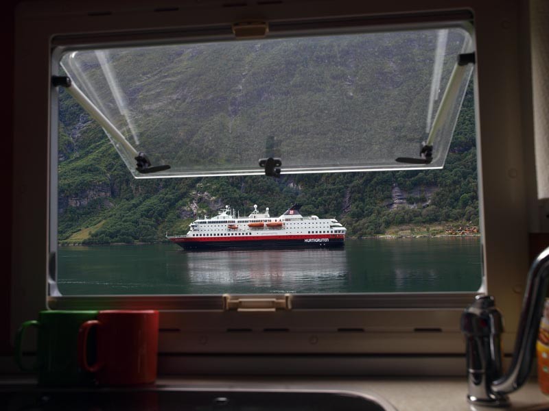 Bildchen mit Schiff im Geiranger und mit Bezug zum Womofahren