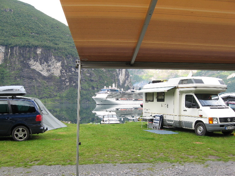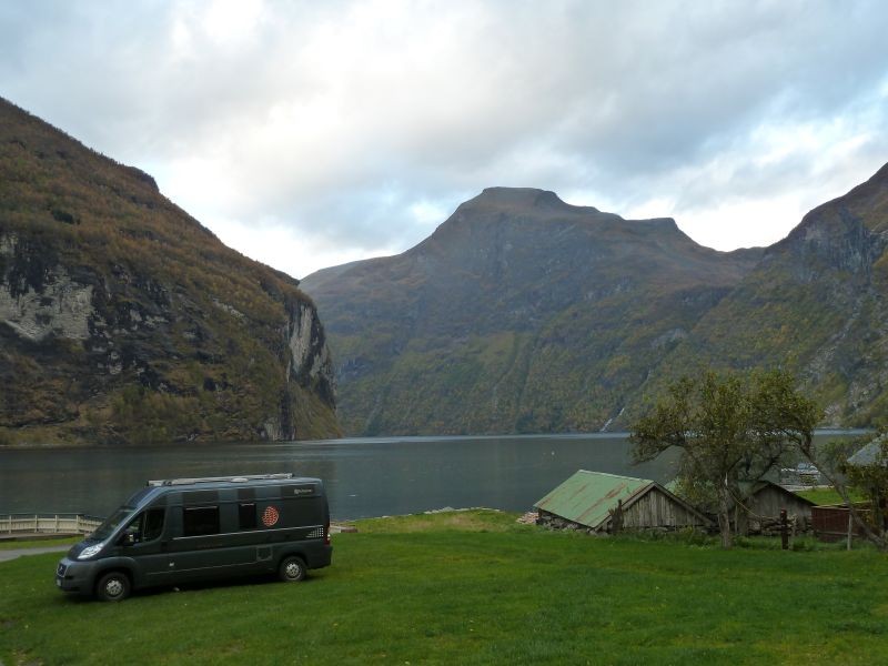 Oktober2010 bin ich mit einem Miet-Kastenwagen ein wenig durch Norge gecruist und auch am Geiranger gelandet. Grande-Camping hatte geschlossen,jedoch an der Reception hing eine Tel.Nr.aus, fix angerufen und binnen 10min.kam das nette Besitzerpaar und hat mich auf Platz den geleitet,schnell noch den Saniraum geöffnet 150 Kronen bezahlt +2Duschmarken und die Welt war in Ordnung. War ganz allein auf dem Platz=Totenstille. Auch im Ort Geiranger war ich Einzlegast!