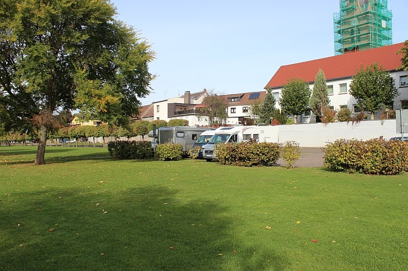 Stellplatz ohne alles am Mainufer in der Nähe der Fähre am Ende eines Parkplatzes.