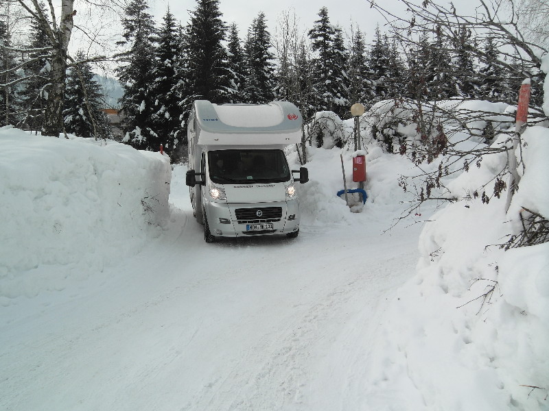 wir sind keine Wintersportler aber haben letzten Februar erstmals mit neuem Womo die Wintertauglichkeit in Füssen getestet. Macht Spaß, nur ohne TV, da müssen wir noch was ändern, sollten wir mal länger als nur paar Tage weg sein. Die Dunkelheit beginnt halt früh. Wir haben nicht vor, Winterreifen zu kaufen, sind ja nur 2-3 Stunden von den Alpen weg, fahren nur bei freien Straßen und Sonne :D Und sollten wir vom Schnee auf dem Stpl überrascht werden, wird die Heimfahrt halt verschoben..... :D Wandern in verschneiten Bergen voller Sonne, das genügt uns. Und wenn keine Sonne scheint, leben wir ja umringt von lauter Thermen, da bleibt viel zu tun... :D |