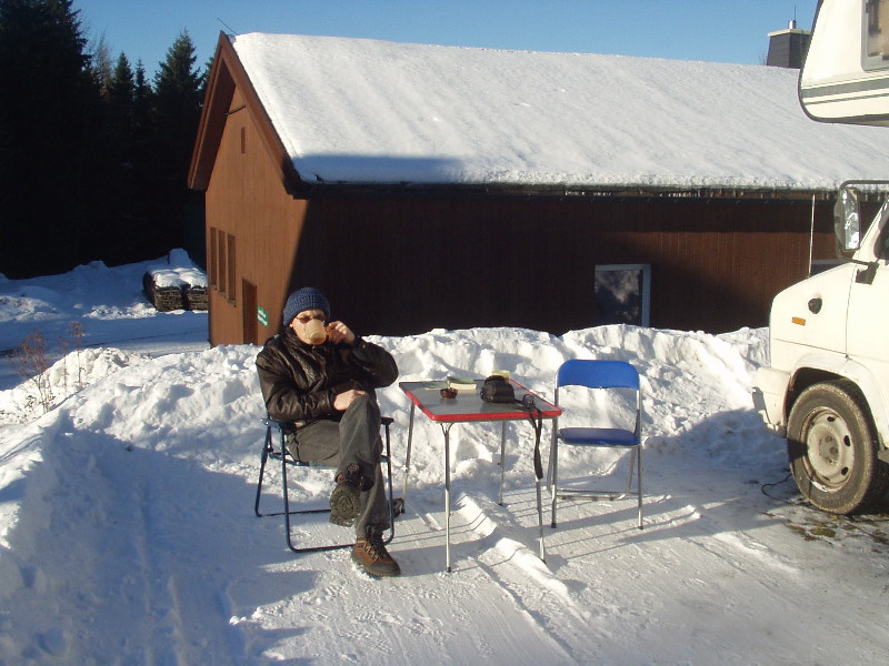 Mit dem "Alten" ging das und der war nicht Winterfest und mit den "Neuen"erst Recht ! ![]() -2 Grad, es liegt 1m Schnee, die Sonne scheint. Wir stehen im Hochschwarzwald an einem ruhigen Platz. Die Aussicht reicht bis ins Elsass.