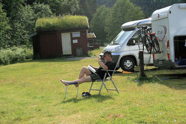 In Geilo steuern wir unseren „Stammcampingplatz“ an. Klein, meist recht leer…hier fühlen wir uns irgendwie wohl. Der Besitzer erkennt uns wieder (was uns echt erstaunt!) und wir plaudern eine ganze Zeit lang über alles Mögliche. Macht richtig Spaß, unser englisch ist auf dem gleichen (stark verbesserungswürdigen) Stand wie das seine. Da hat man wesentlich weniger Hemmungen, das immer mehr nachlassende restliche Schulenglisch anzuwenden. Ach ja, es regnet fast den ganzen Tag.